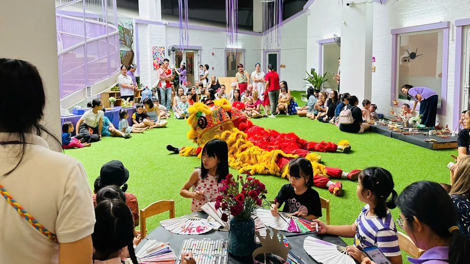 Múa lân là một phần không thể thiếu của Trung Thu. Tại Trường Mầm non Quốc tế Sky, bố mẹ và các con sẽ gặp gỡ “Bố mẹ Lân và Bé Lân” - khởi đầu cho một buổi sáng đầy hứng khởi và yêu thương. Ngoài ra các bạn nhỏ sẽ có cơ hội thăm Ông Lân “ngủ” nếu đến sớm nữa đó!